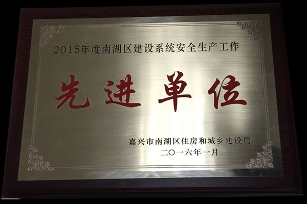 2016年1月我公司被嘉興市南湖區(qū)住房和城鄉(xiāng)建設(shè)局評(píng)為“2015年度南湖區(qū)建設(shè)系統(tǒng)安全生產(chǎn)工作先進(jìn)單位”
